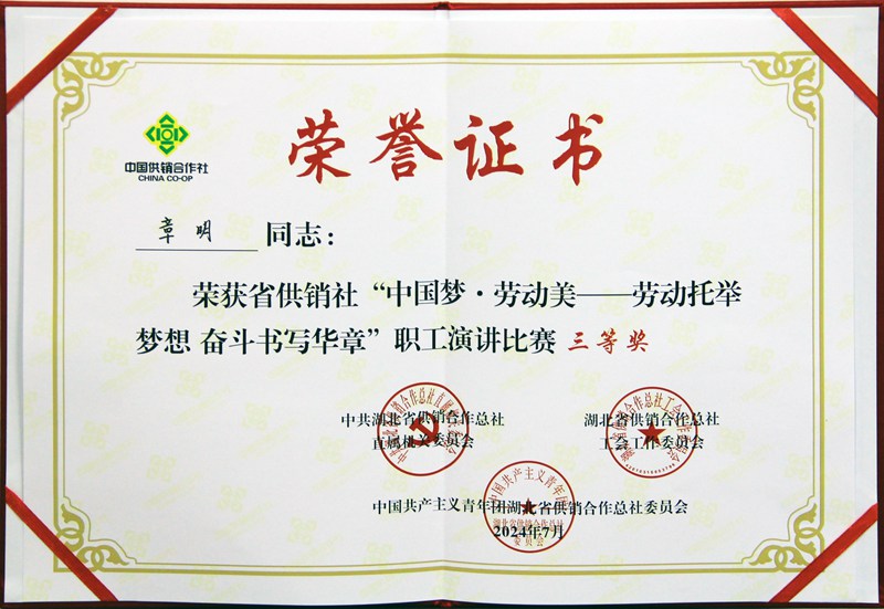 7月24日上午,由省供銷社直屬機關(guān)黨委、工會、團委聯(lián)合舉辦的“中國夢·勞動美——勞動托舉夢想 奮斗書寫華章”職工演講比賽落下帷幕。經(jīng)過激烈角逐,農(nóng)資控股集團榮獲省供銷社職工演講比賽“優(yōu)秀組織獎”,公司參賽選手楊安琪、章明分別榮獲比賽二等獎和三等獎。